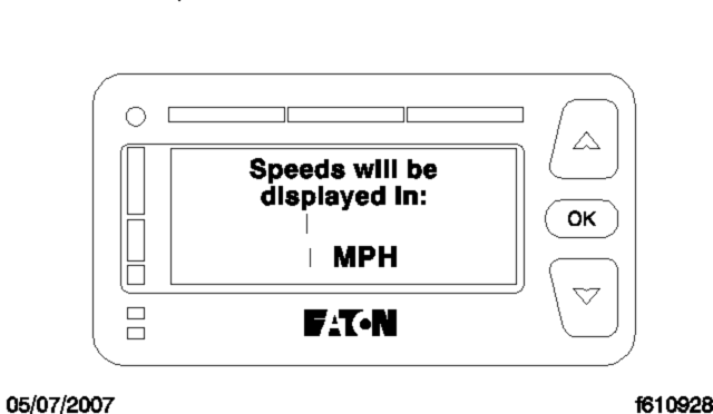 The up and down arrows are used to select either km/h or mph units for display of SmartCruise set speed. The previous km/h or mph setting is displayed at the next ignition cycle. See Fig..